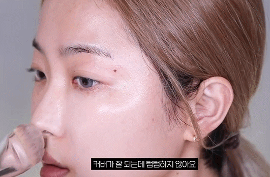 ↑高遮瑕度的粉底液搭配珠光感的散粉塑造出剔透的底妆。