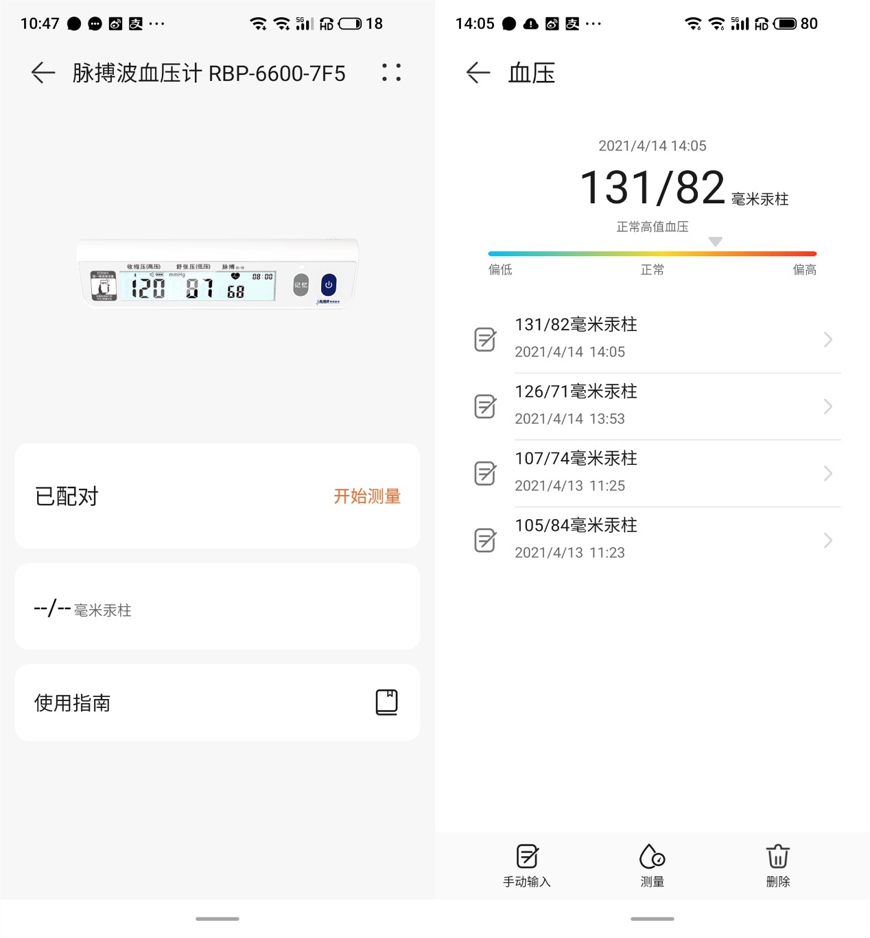 为了验证手头这个RBP-6600脉搏波血压计的测量准确性,这里对比自己的另一台iHealth智能电子血压计,也可以提供高低压和心率三种测试结果,已经进行过校准,不过测量结果会存在一些误差,三个结果会比医院测量结果普遍高上2~3个单位。