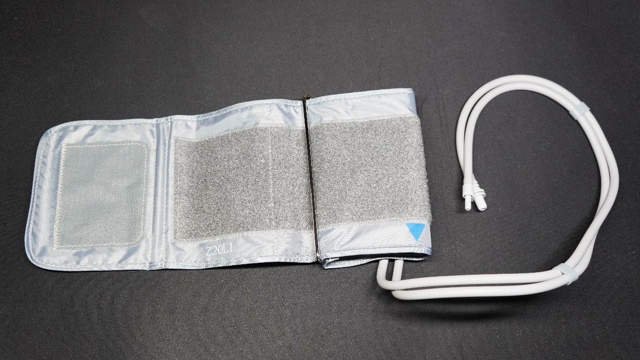 袖带有大中小三种规格,搭配的是中号的双管双气囊袖带,袖带周长范围为15厘米~42厘米,适用于绝大部分人群。特别肥胖或瘦小的可重新购买合适的袖带。