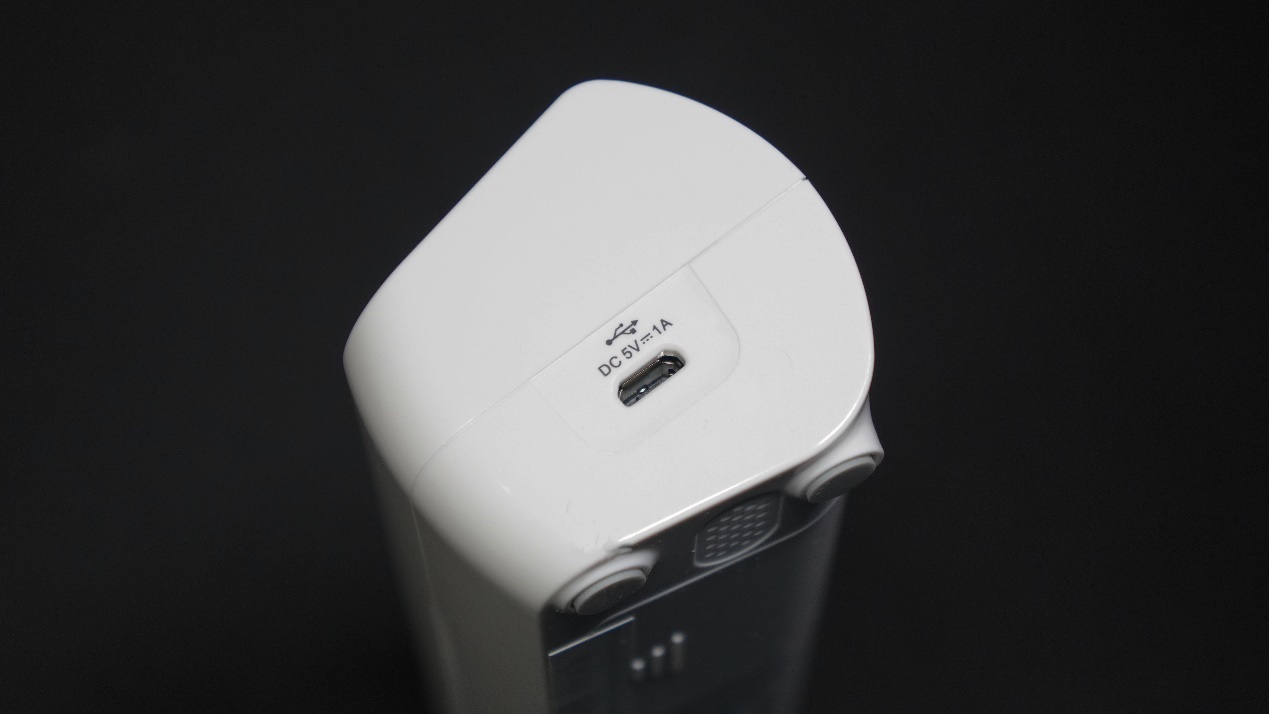 华为智选脉搏波血压计内置大容量锂电池,充满电能连续测量200次以上,搭配右侧的micro USB接口进行充电,充电电流为常见的5V~1A。如果可以设计有橡皮塞一类的防尘塞来保护接口会更好些。