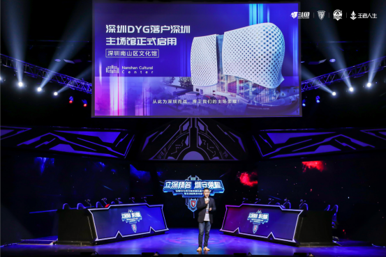 2021年4月16日,斗鱼旗下深圳DYG电子竞技俱乐部入城仪式暨主场启用发布会在南山文化馆顺利举行,深圳市南山区副区长练聪、深圳市南山区文化广电旅游体育局局长周保民、深圳市南山团区委书记金翠、深圳市文化广电旅游体育局体育产业处副处长李翊、深圳市南山区文化广电旅游体育局文产中心主任刘裕荷等政府领导莅临发布会现场。其中,周保民局长进行开场致词,对DYG电子竞技俱乐部(以下简称:深圳DYG)正式落户及主场启用表示热烈欢迎。