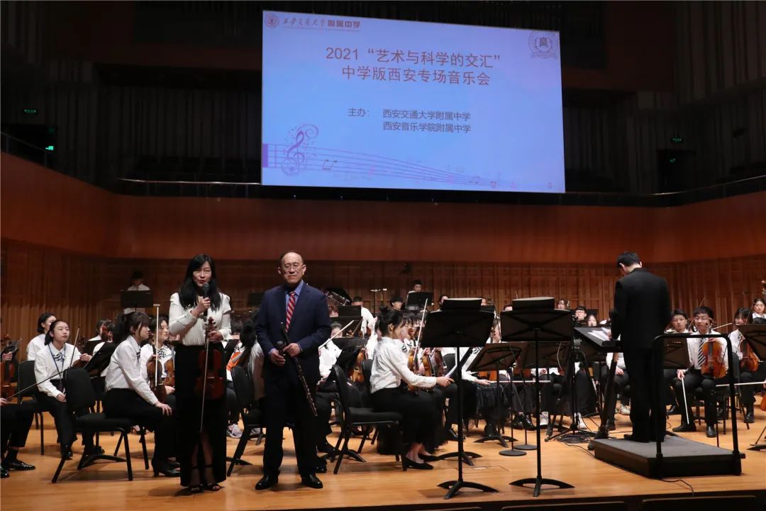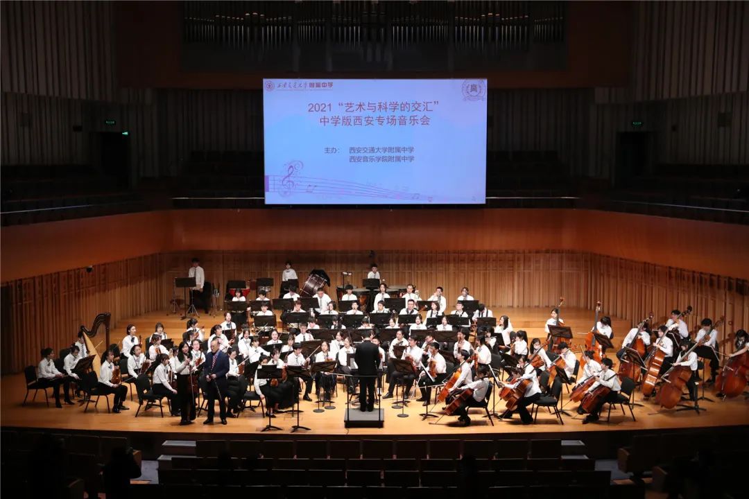 2021年4月15日晚,“艺术与科学的交汇”中学版首场音乐会在西安音乐厅精彩上演。音乐会由西安交通大学电子与信息学部主任管晓宏院士策划,西安交通大学附属中学和西安音乐学院附属中等音乐学校联合主办,两校联合交响乐团演奏,交大附中校友、西安音乐学院侯颉副院长担任指挥。