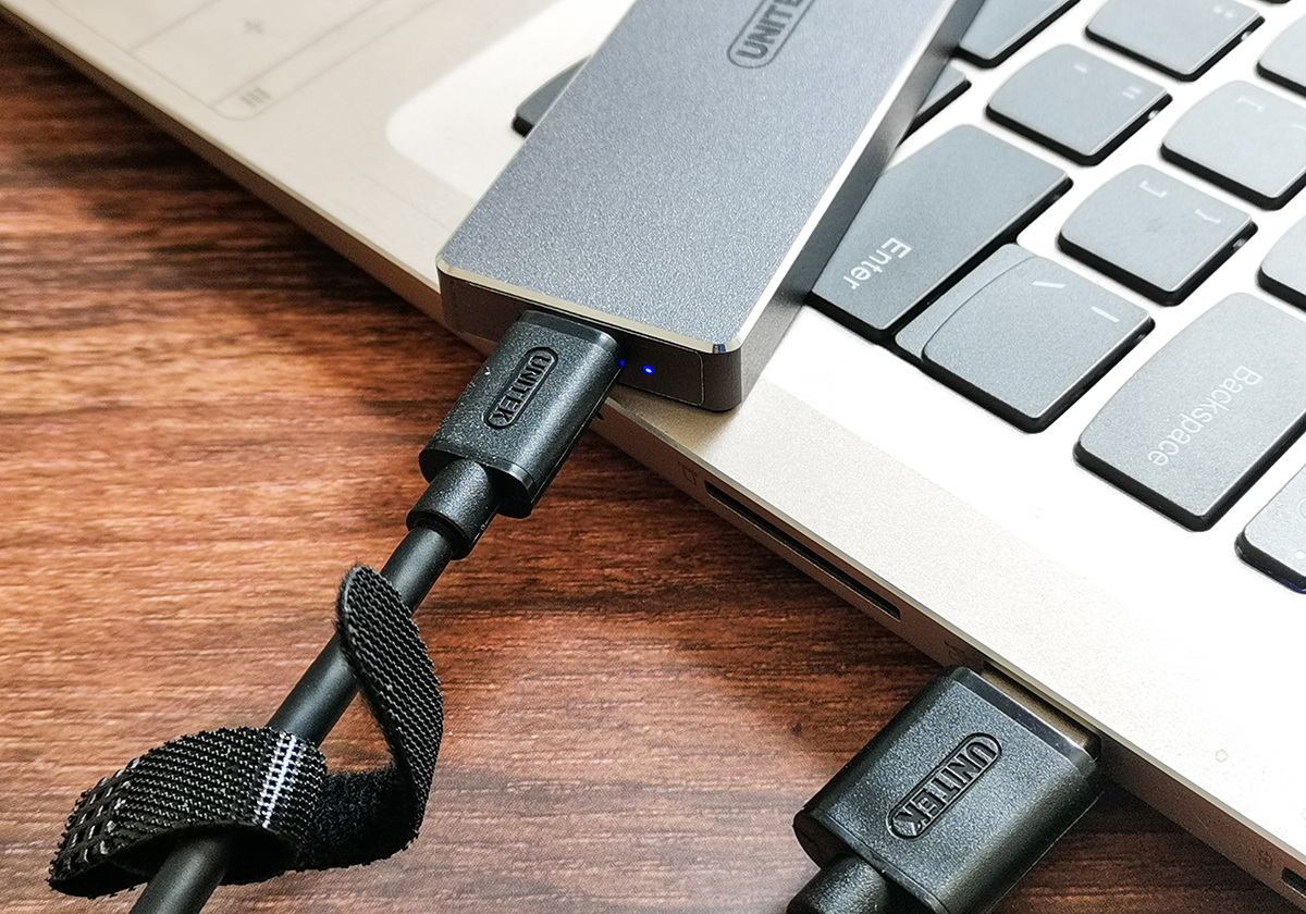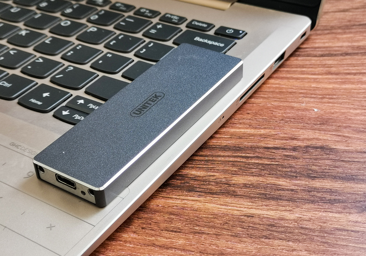 这款优越者M.2硬盘盒采用全铝合金材质,抗压、防摔、耐刮擦的效果比较好,再加上机身银灰色的金属漆,突显出精致的商务气息,还可有效防指纹沾染。还有边框的CNC高光倒角既防割手又增添冷酷的气质,整体颜值让我挺受用的。