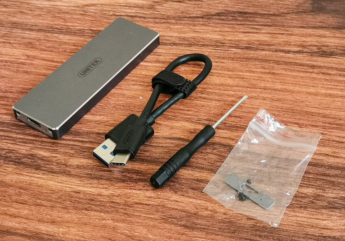 包装清单:M.2硬盘盒、USB AtoC数据线、螺丝刀、装饰挡板及螺丝。