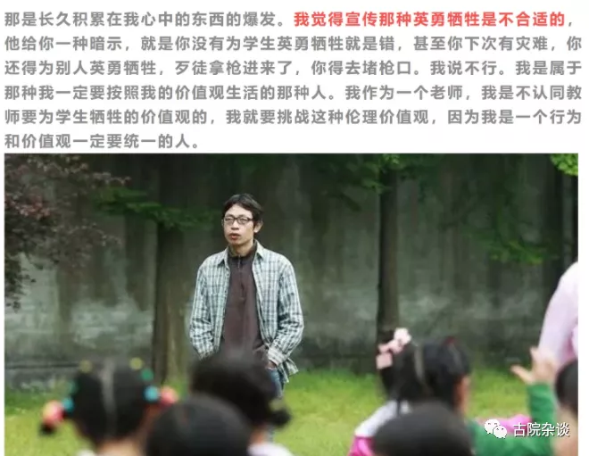 网络上有人说,师者,传道受业解惑也。当时的法律并没有规定老师要保护学生的性命,留下来救人是英雄,跑了是普通人,只能说没有师德。你不能要求别人去当英雄,只能要求你自己,否则就是道德绑架。