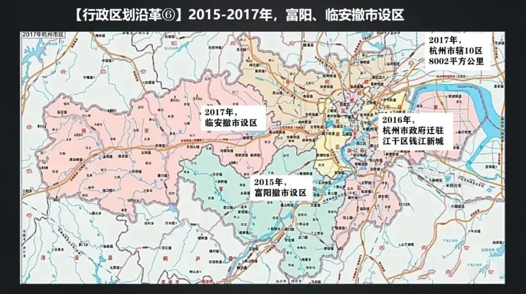2015年1月,富阳撤市设区;2017年8月,临安撤市设区,至此杭州市区面积扩大到8000平方公里,户籍人口达到787.22万人。