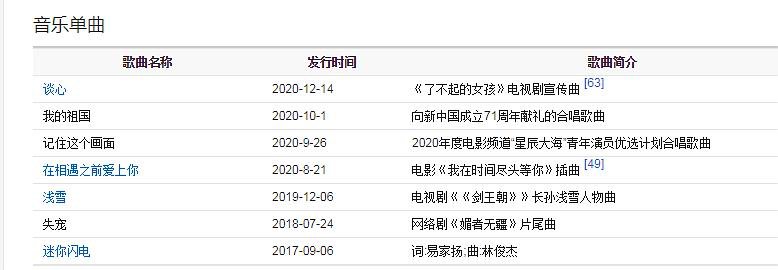 这五年的时间里,她不止拍了这么多电视剧电影,还有音乐单曲: