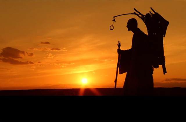 为追求佛法真谛,玄奘法师决定西行求法。他立马上书唐太宗,请求西行,但当时边关战事不休,未获批准。两年后即公元629年,朝廷因饥荒允许百姓自行求生,玄奘法师即从长安出发,经姑臧出敦煌,经今新疆及中亚等地,辗转到达天竺,进入当时的佛教中心那烂陀寺。