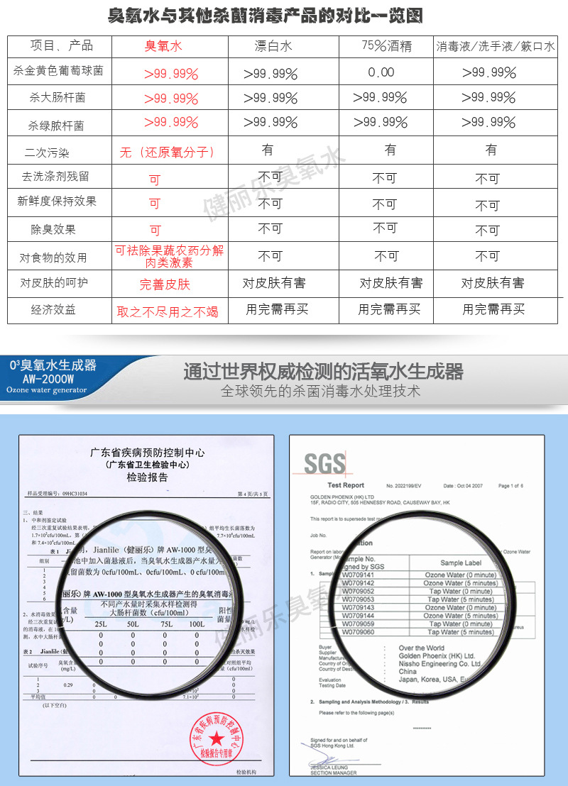 臭氧水还有其他很多功效,应用的地方也非常广,比如消毒杀菌、净化水质、去除农残、护肤美容、保健等等,臭氧水都能做到。