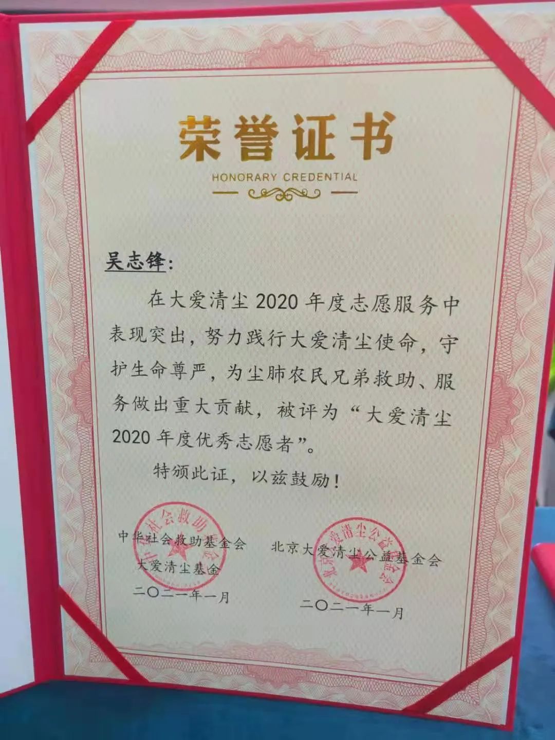 2021年4月17日,大爱清尘2021年全国志愿者培训交流会在山西太原举办。郝凤桐、张继先、邹建芳等多位国内顶级尘肺病专家,与来自全国各地的140多位志愿者一起交流学习,以促进志愿者志愿服务的专业化,提升志愿者的服务能力。红都义工吴志锋获评为“大爱清尘2020年度优秀志愿者”!