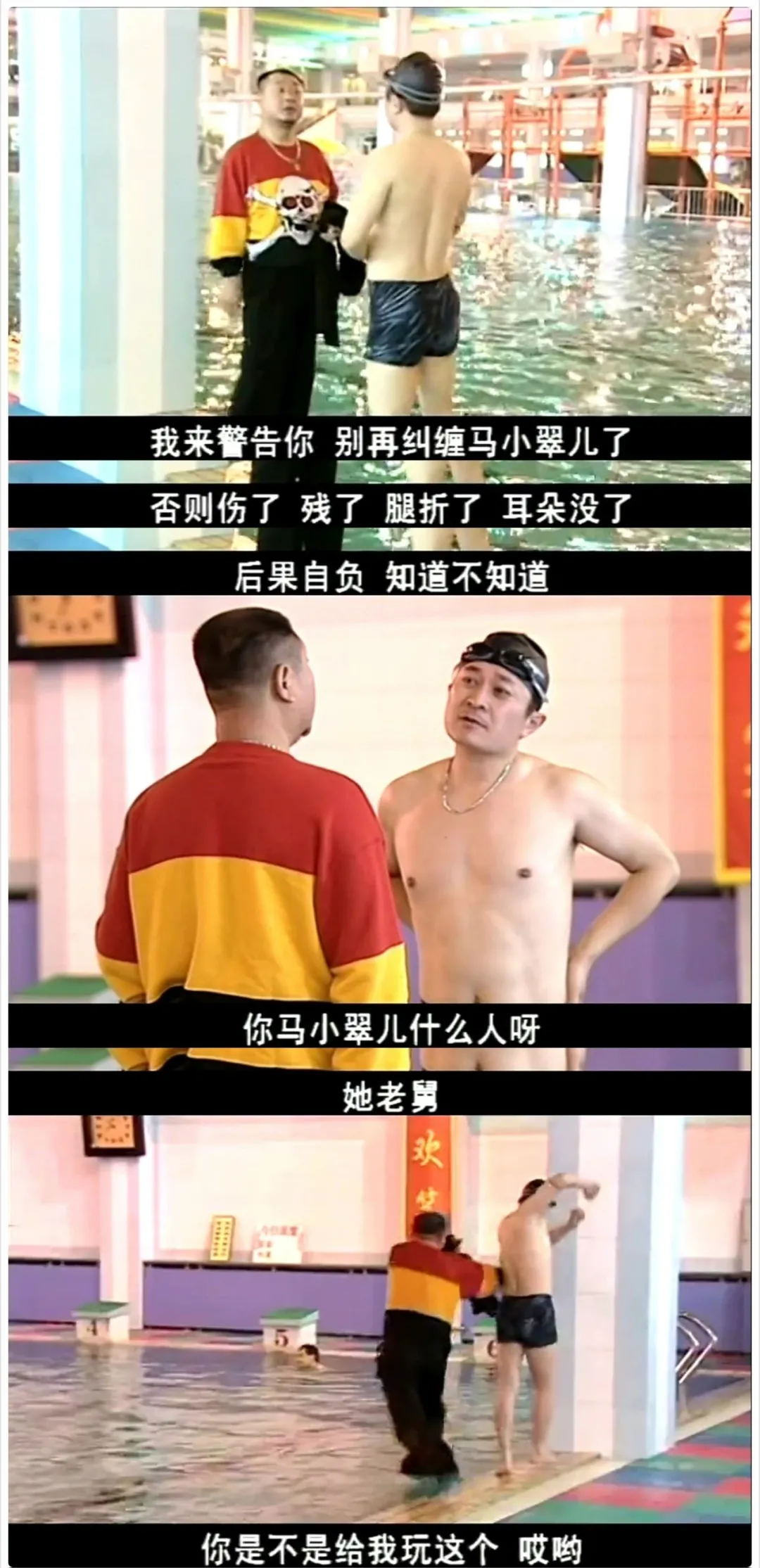 钢子忌惮德彪的身份,不敢还手。谁知德彪推搡钢子的过程中自己却掉进了泳池,他自己又不会游泳,挣扎的过程也成为了《马大帅》的经典名场面。德彪又自封了个水库浪子的名号。