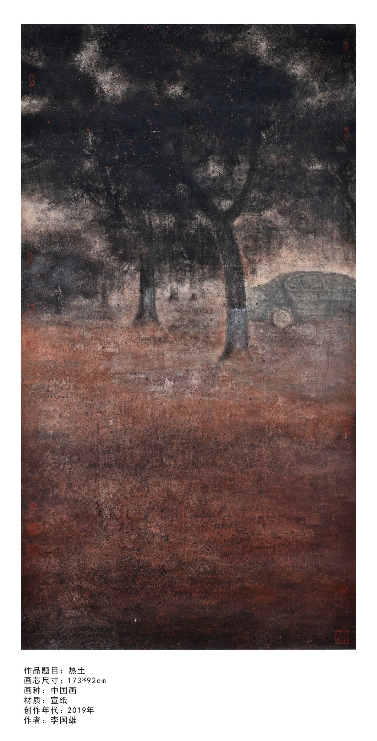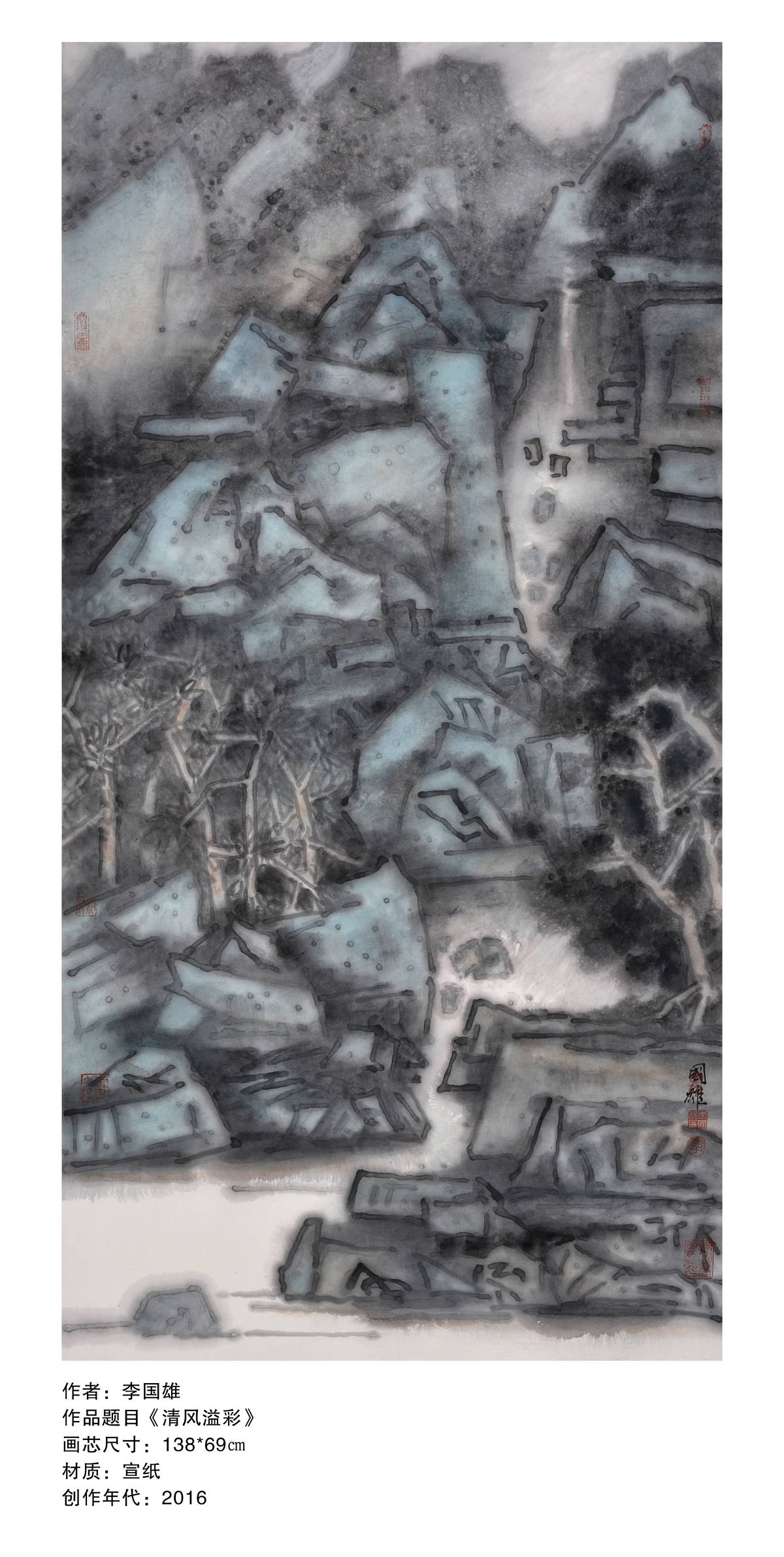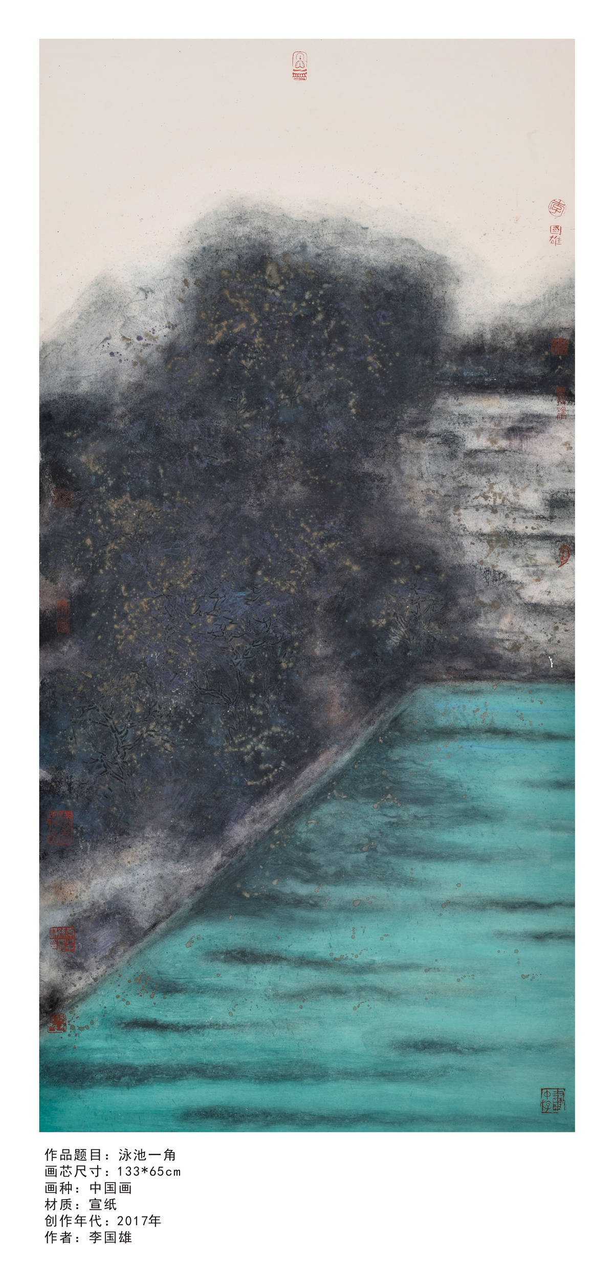 艺术的主观性、多元性和不确定性,是我对艺术如此迷恋的根本原因。一千个人就有一千个哈姆雷特,一千个艺术家就应该有一千种艺术诠释。我的艺术语言,首重真实,我喜欢从现实中获取灵感,我的创作题材,大多根植于现实社会,对我来说,脱离了现实,艺术便是无根之木、无源之水。其次,我看重视觉张力。我喜欢用矶理来表达画面,所以我的艺术创作往往具有视觉冲击力,厚重感、形式感、哲学感三者兼备。我不喜一成不变,乐衷于尝试新的技法和风格,近期我尤爱追求画面的空灵感,如何在视觉效果呈现、大块面与小块面的对比、虚实处理取得突破,是我最近思考的艺术命题。———李国雄