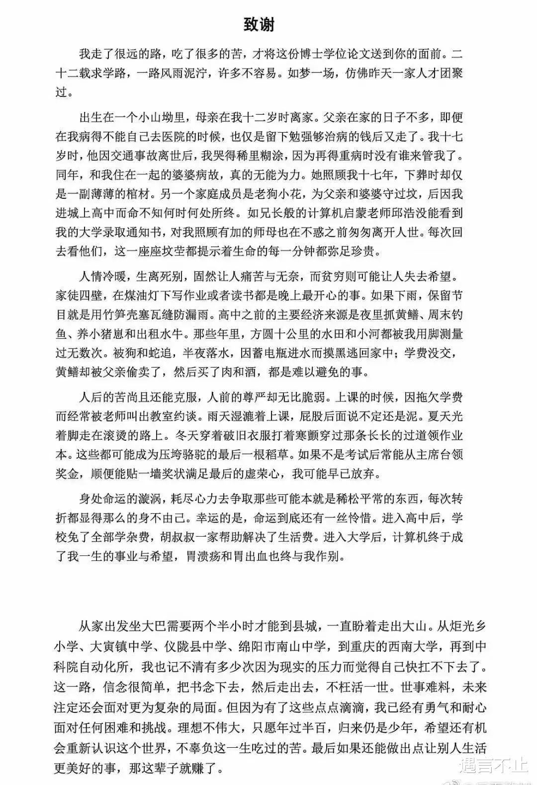 在这篇致谢中,作者记述下自己艰难的求学路。