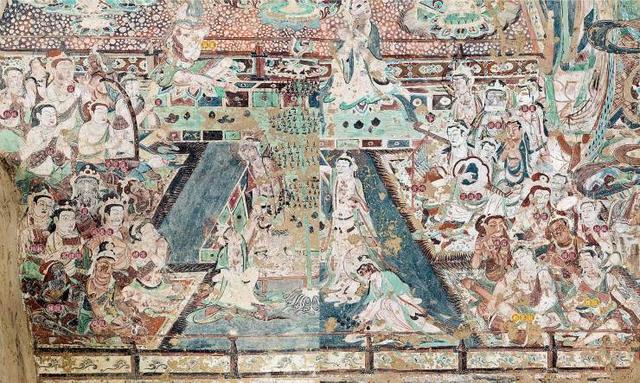 敦煌壁画中,有一个栩栩如生的音乐世界。眼花缭乱的乐器,形态各异的乐伎,编制不一的乐队,这些规模或大或小的乐队,有的使用奇特乐器,有的按照编制排列,甚至还有一支不用乐伎弹奏的,不鼓自鸣的“无人乐队”。