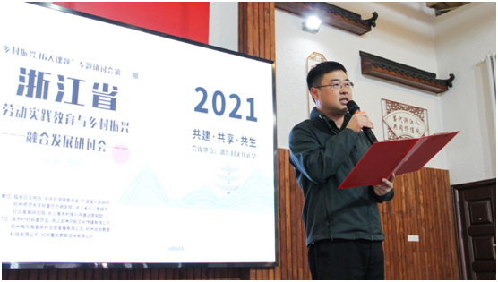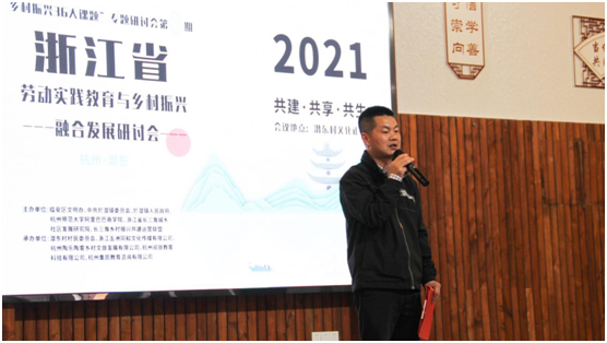 长三角乡村振兴共建运营联盟发起人、浙江五洲同和文化传媒有限公司创始人赵鑫发表题为“劳动教育与乡村振兴融合发展模式潜东思考”的演讲。