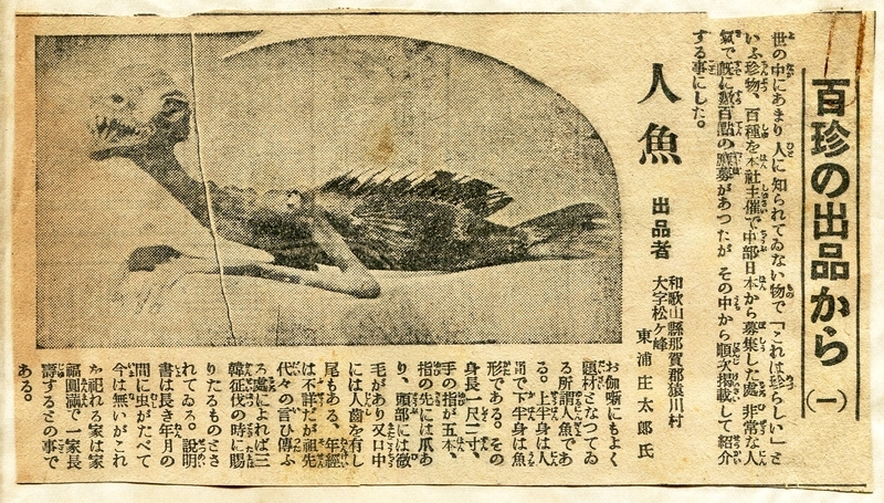 昭和12年,《歴史写真》曾刊登过一则人鱼标本的图片。据说收藏者是一个叫東浦庄太郎的人。
