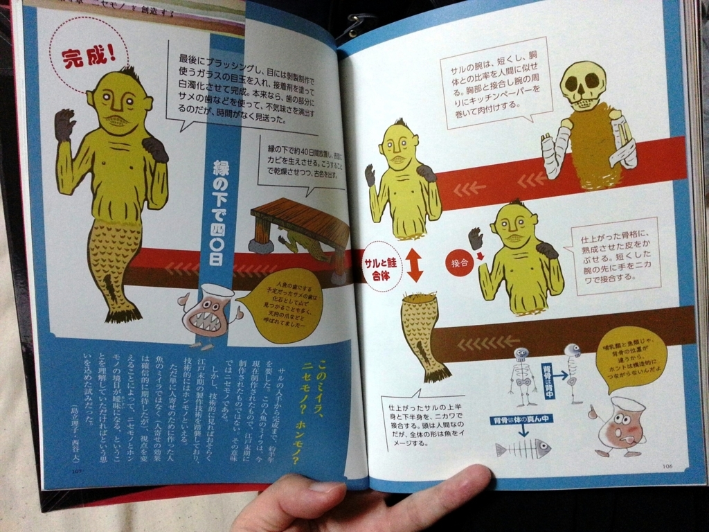 ▲ 人鱼标本的制作方法,主要就是把猴子和鱼的部分身体拼起来,刷上日本酱油,再扔到廊下风干