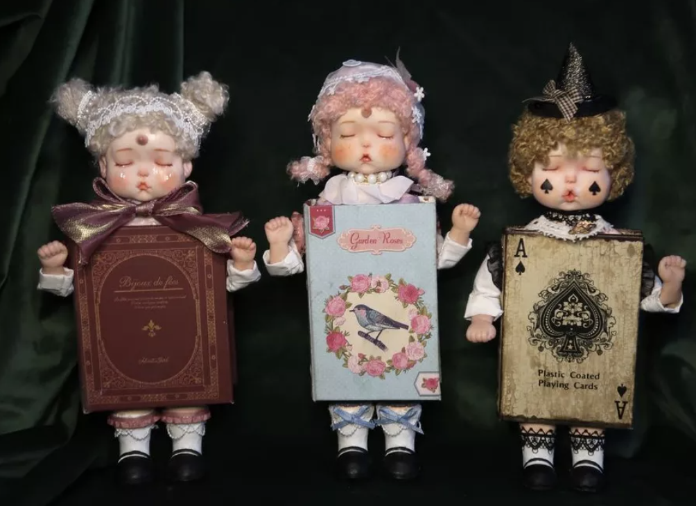 ▲ 软陶制成的娃娃,可爱之余,胸口的书与扑克牌从字体和配色方面,都有种复古的感觉