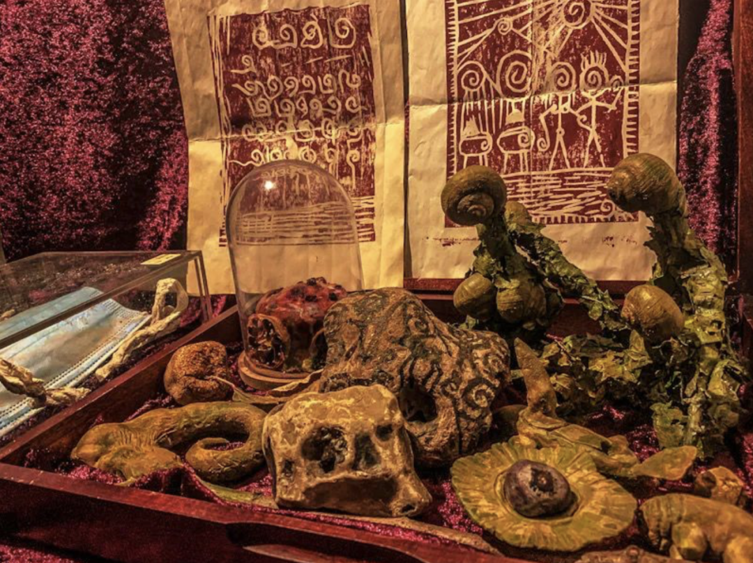 在臆想仓库中,展厅变成一个庞大的仓库,幽暗死寂,各种千奇百怪的“臆想之物(展品)”被无序地置于货架上。其中涉及神学、科学、解剖学、生物学、心理学、历史、宗教等门类。参展人的身份也五花八门,包含了艺术家、科学家、设计师、手工艺人、音乐人以及各种藏家玩家。