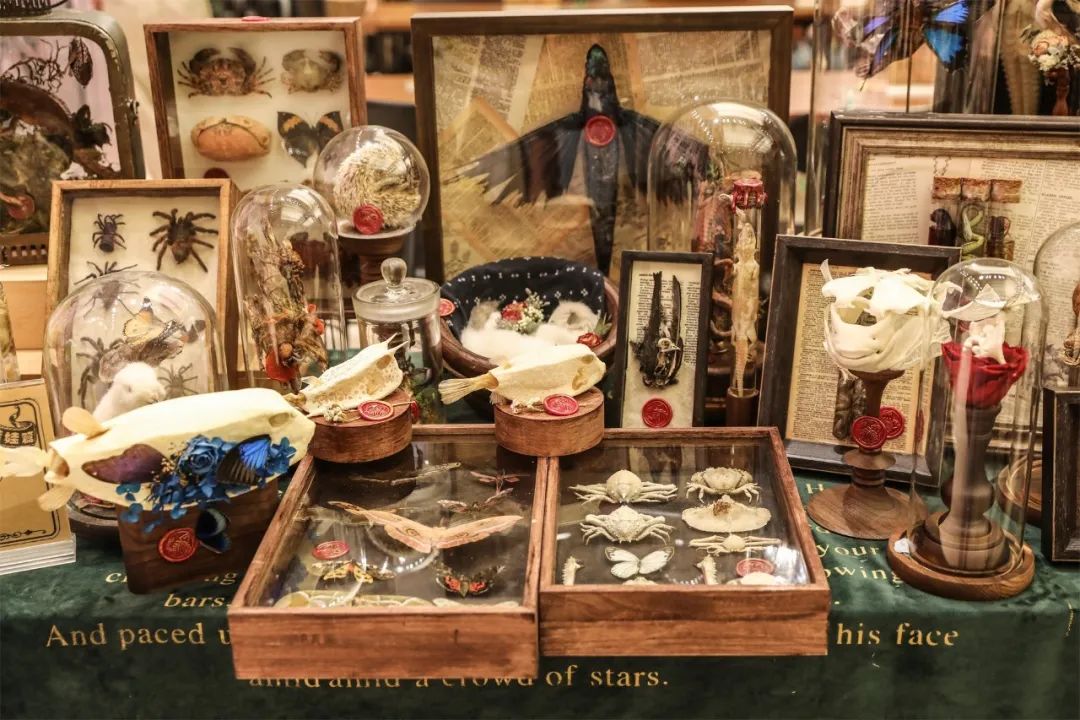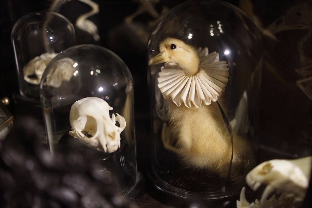 ▲ 精美的标本,无疑是给了生物二次生命。我们可以看到胚胎标本、浸渍在罐子里的蛇、鞭蝎、蜥蜴、石龙子。但这和学校生物标本室的感觉完全不同,因为其中带着一种复古的美感