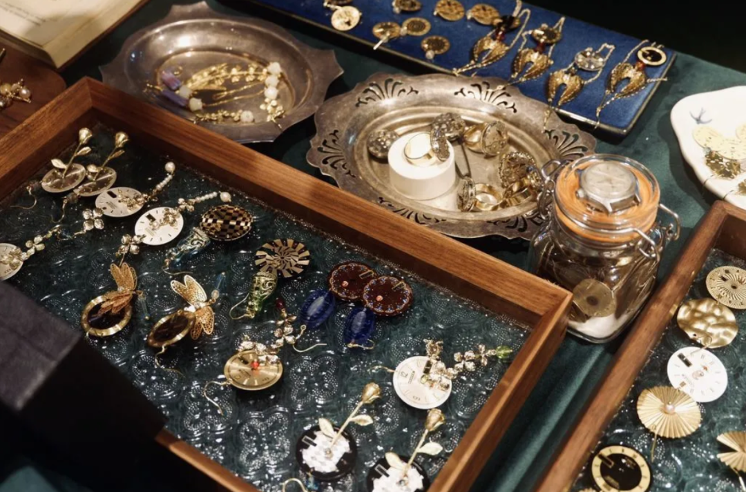 ▲ 来自60s-80s的古董首饰,可以看出素材源于腕表,没有了表针的表,好像象征着时间永驻。这让人想起国安修二的一首老歌《針のない時計》