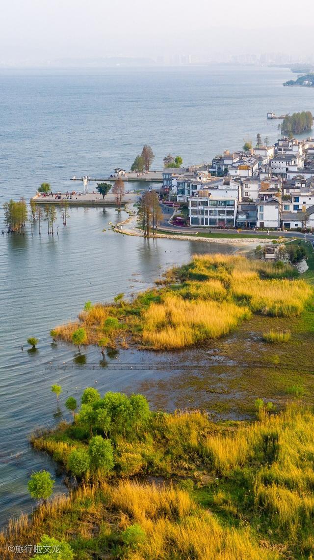 为了更好地观看龙龕码头洱海的景色,便升起了无人机来观赏。在这里我感受到了自由的欢乐,无拘无束生活该有的乐趣。一望无际的洱海和居民居住地相互扩展到远方,水天相接,形成一副美丽的画卷,这就是我心中洱海该有的景色。洱海旁水生植物适宜生长着,给洱海增添一丝美感,来这里游玩的游客很多,洱海依旧保持着干净的状态。
