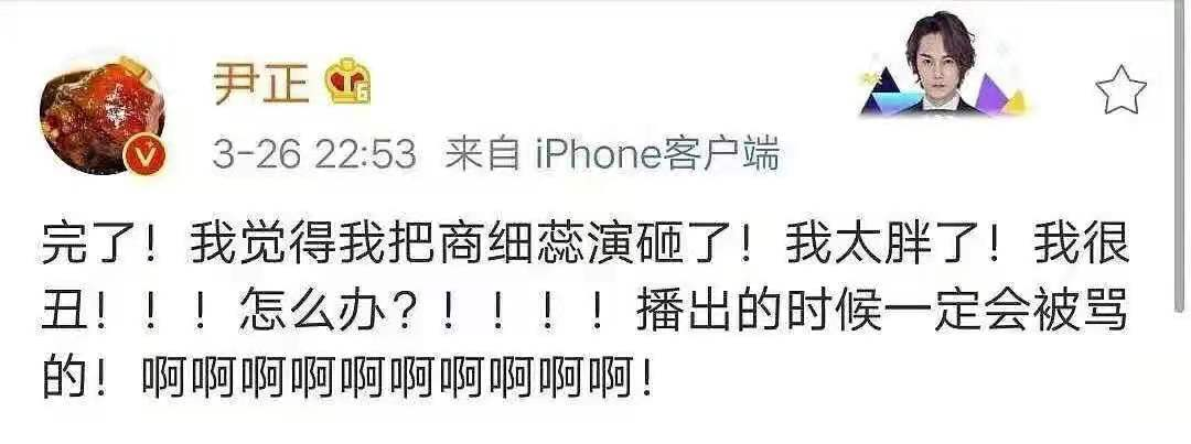 尹正自己也慌了,开始给大家打预防针,说自己太胖了,到播出时一定被骂。