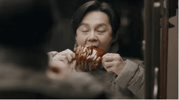 原来是在剧组没少吃,什么红烧肘子、奶油曲奇、烧饼夹肉、油条火烧,一个不落。人家都在演戏,只有尹正是在做吃播。