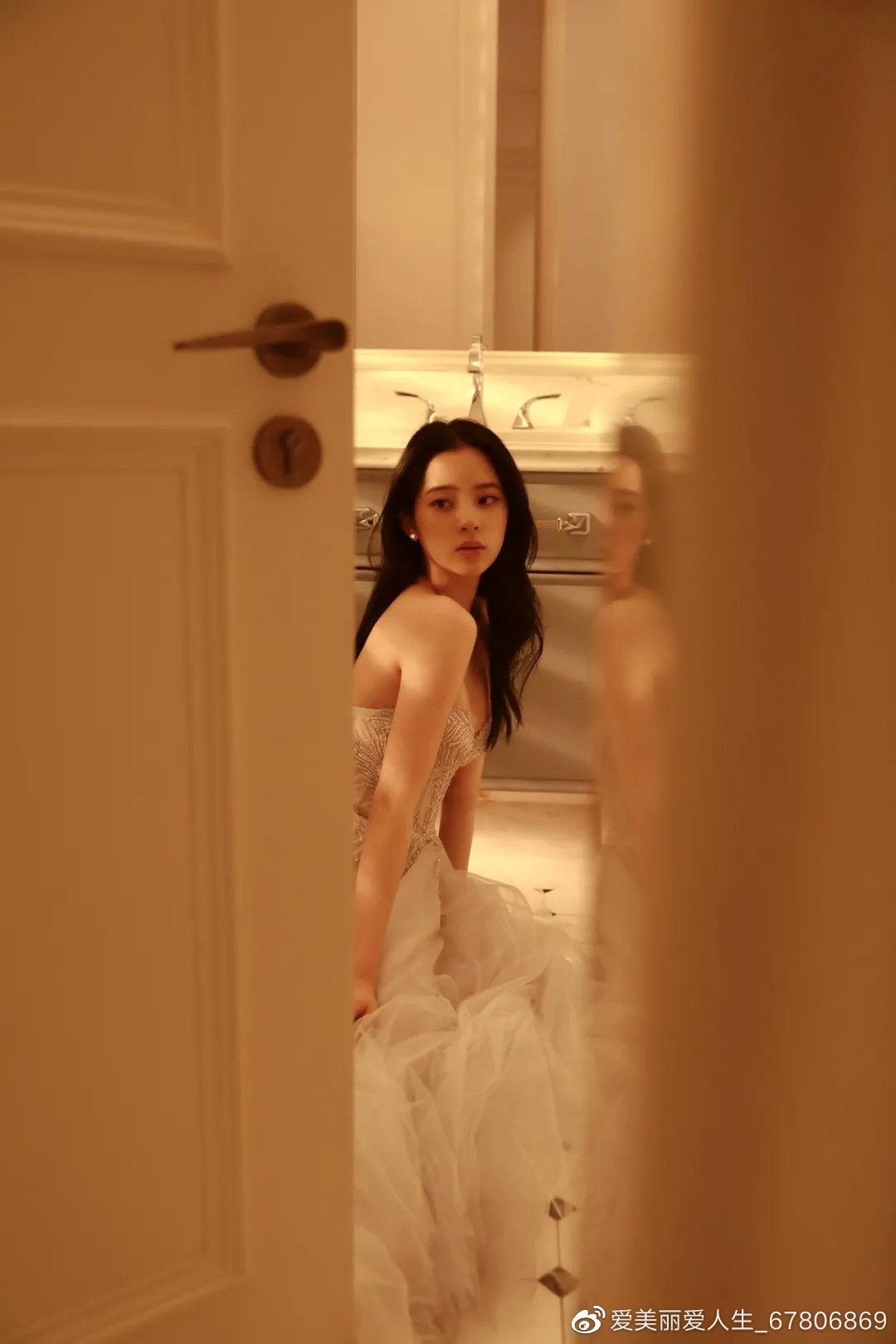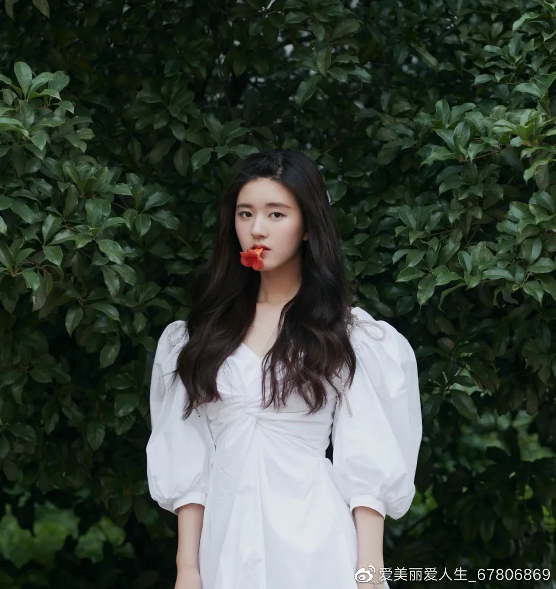 赵露思这张图我之前也放过,长相甜美可爱的她,因为这浓密的大波浪卷,像是被加持了一圈女神光环,妩媚大气了许多。