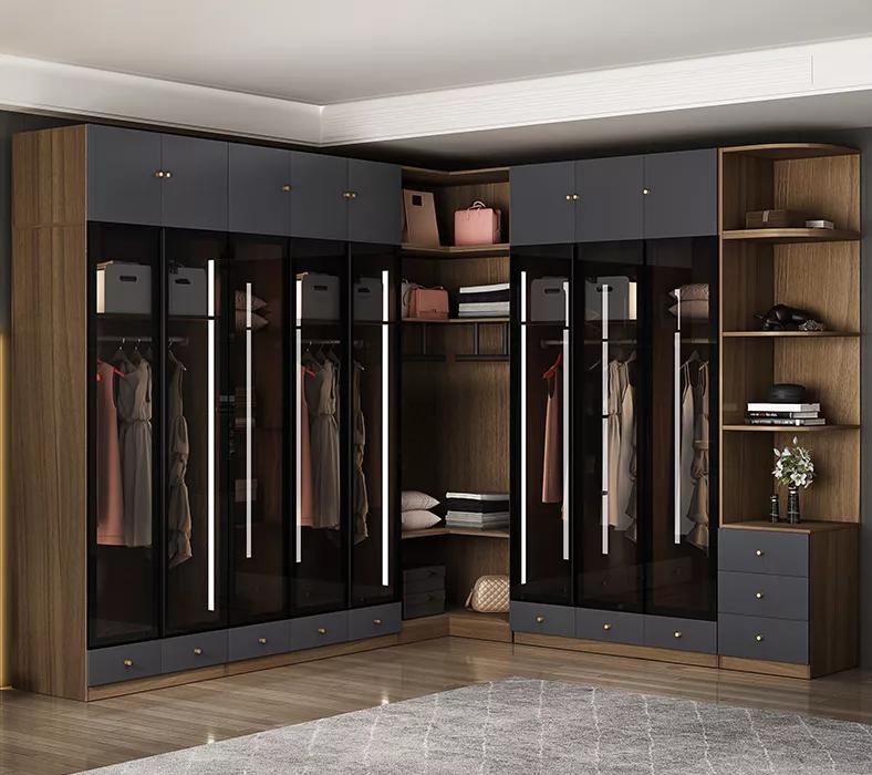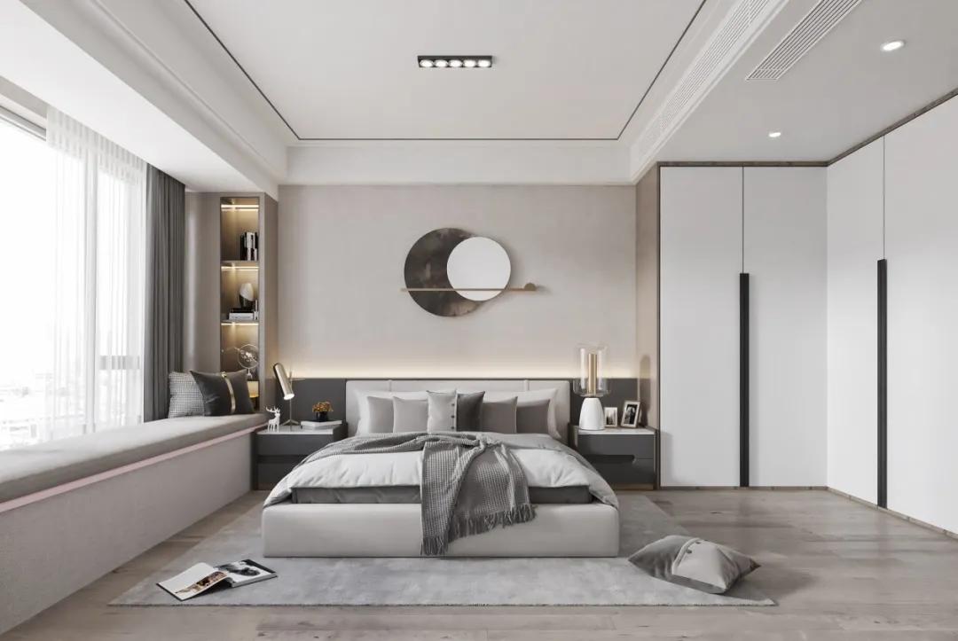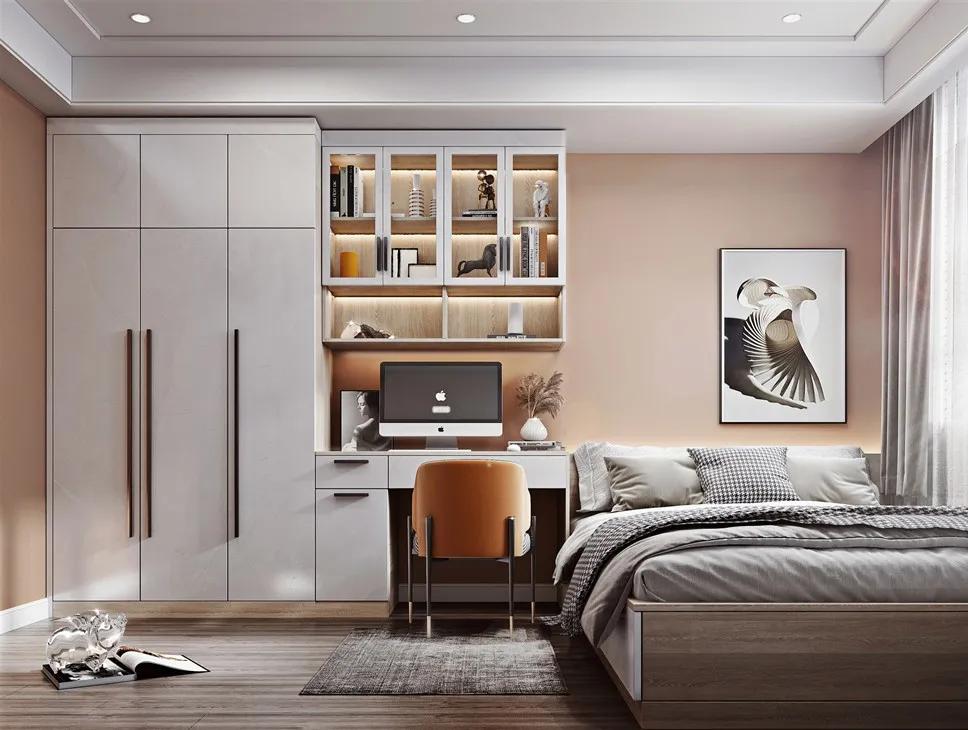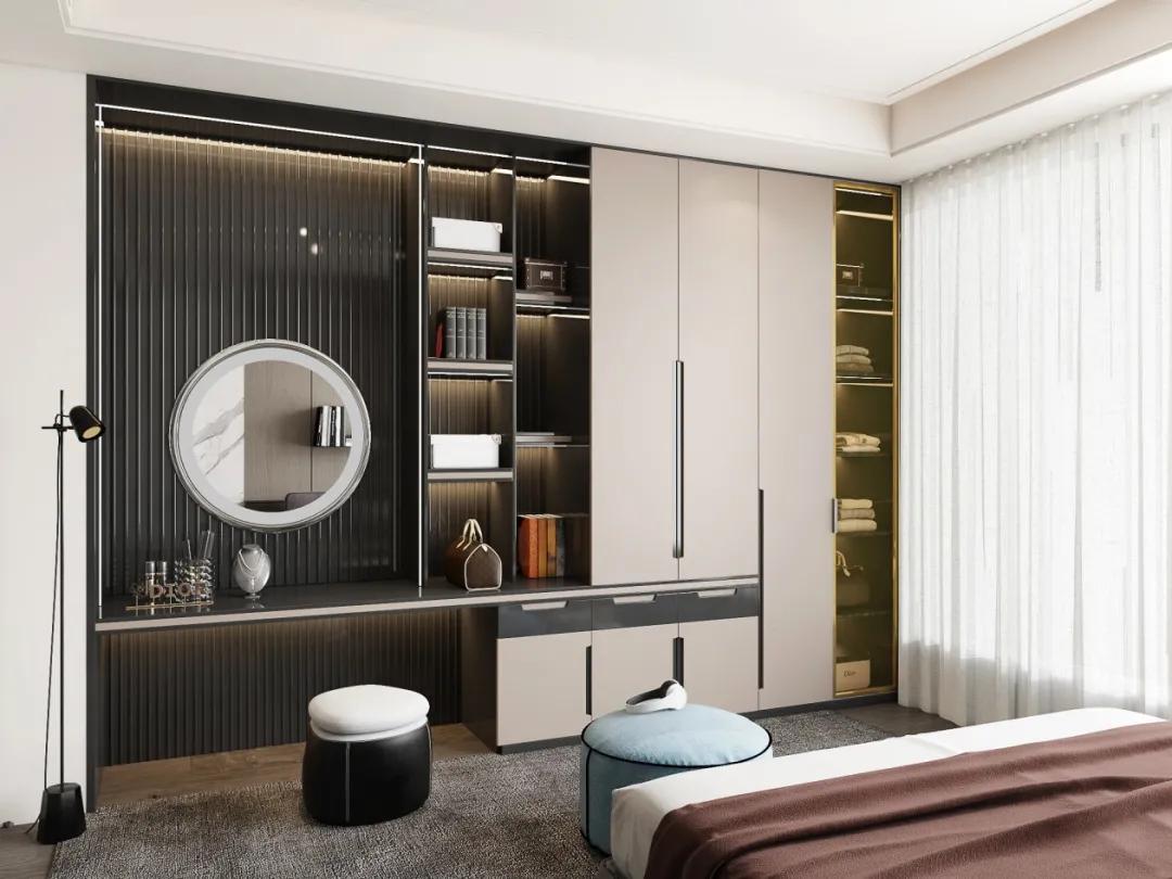 L字型的衣柜布局,能给我们带来十分接近衣帽间的衣柜使用体验。利用卧室转角打造L型衣柜形成的围合区,衣物收纳、杂物整理、饰品摆放、收藏展示这些功能都能在这里得到满足!而且L型衣柜区隔开两个功能区,还卧室一个舒适整洁的睡眠区域,又实用又美观,还很有格调!