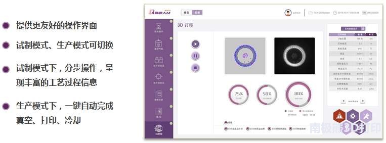 2.更新的打印工艺控制软件提供更友好的操作界面,并增加了生产模式,可一键自动完成真空、打印、冷却等所有过程。