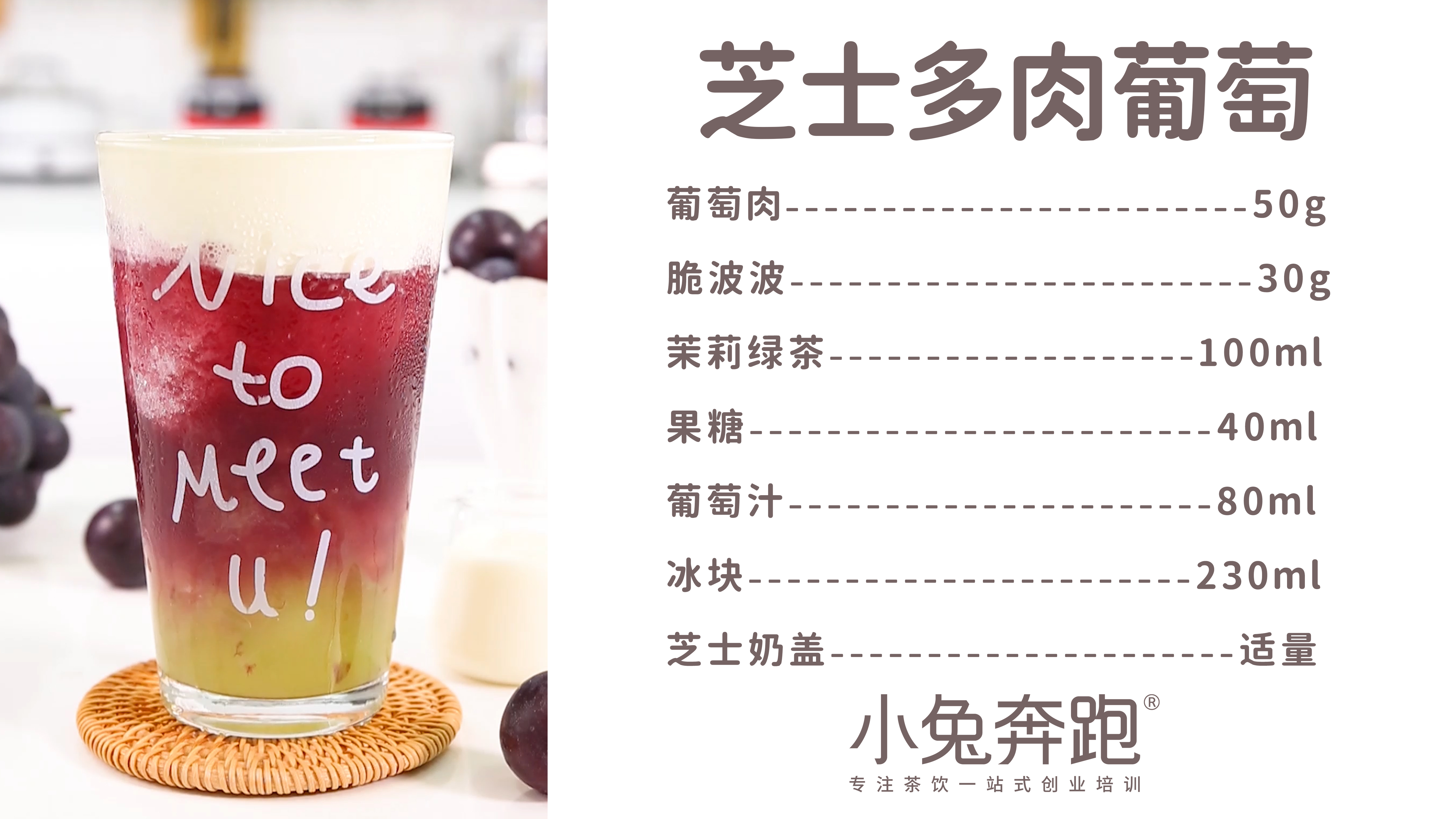 这款饮品选用了巨峰葡萄,采用去皮的做法