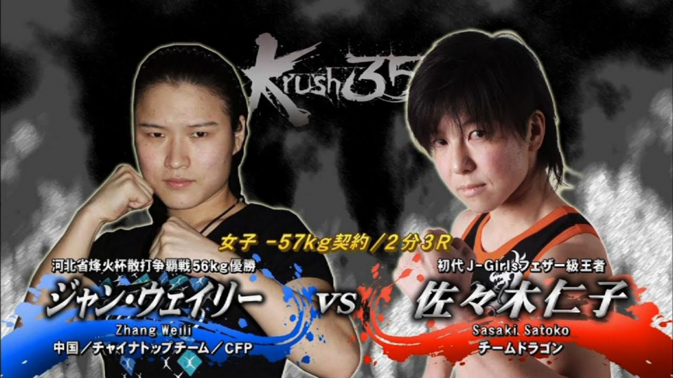 短短的一个月后,李景亮带着张伟丽去了日本参加Krush 35期的比赛,这是一场踢拳赛事,面对战绩显赫的日本对手,张伟丽凭着一股狠劲和重拳侧踹在第一回合打出了很大的优势,数次重击对手,可是当时的她还没打过这样的比赛,并不能适应踢拳的节奏,在第二三回合被对手不断压迫在围绳边,体能下降,最终无奈饮恨败北。