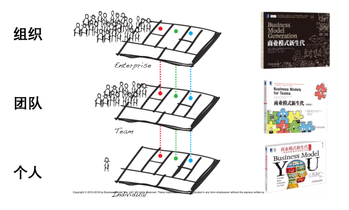 同时,商业模式画布也是一种思维方式。创建这一画布的核心成员在咨询和教学工作中发现,团队和个人是同组织一样的经营单位,商业模式思维对于思考团队和个人工作同样有效。