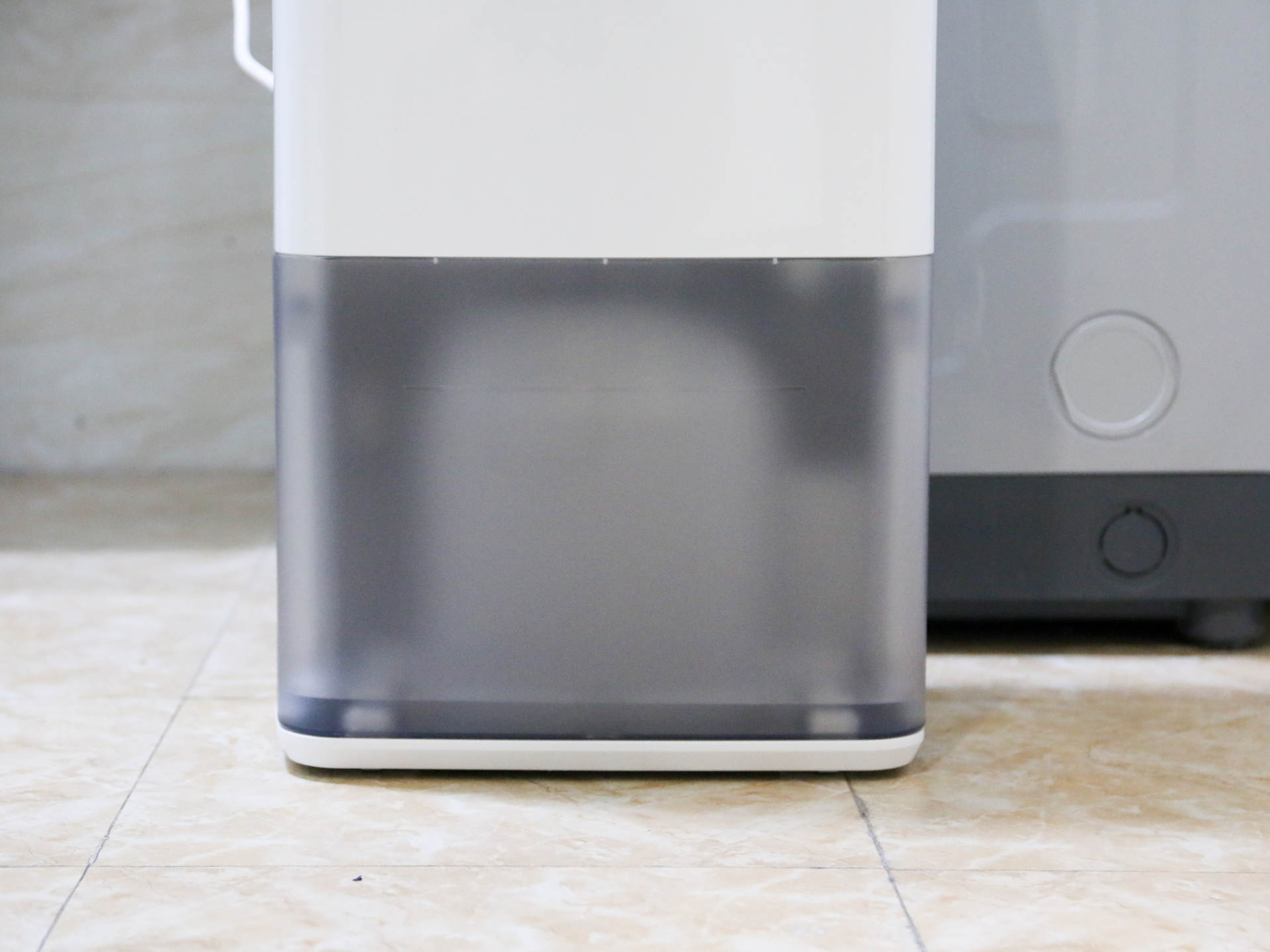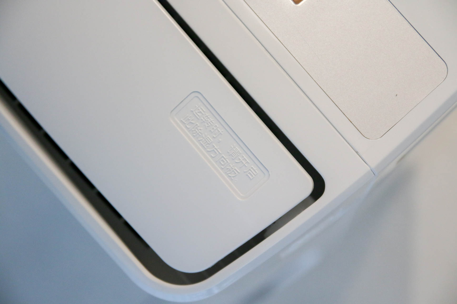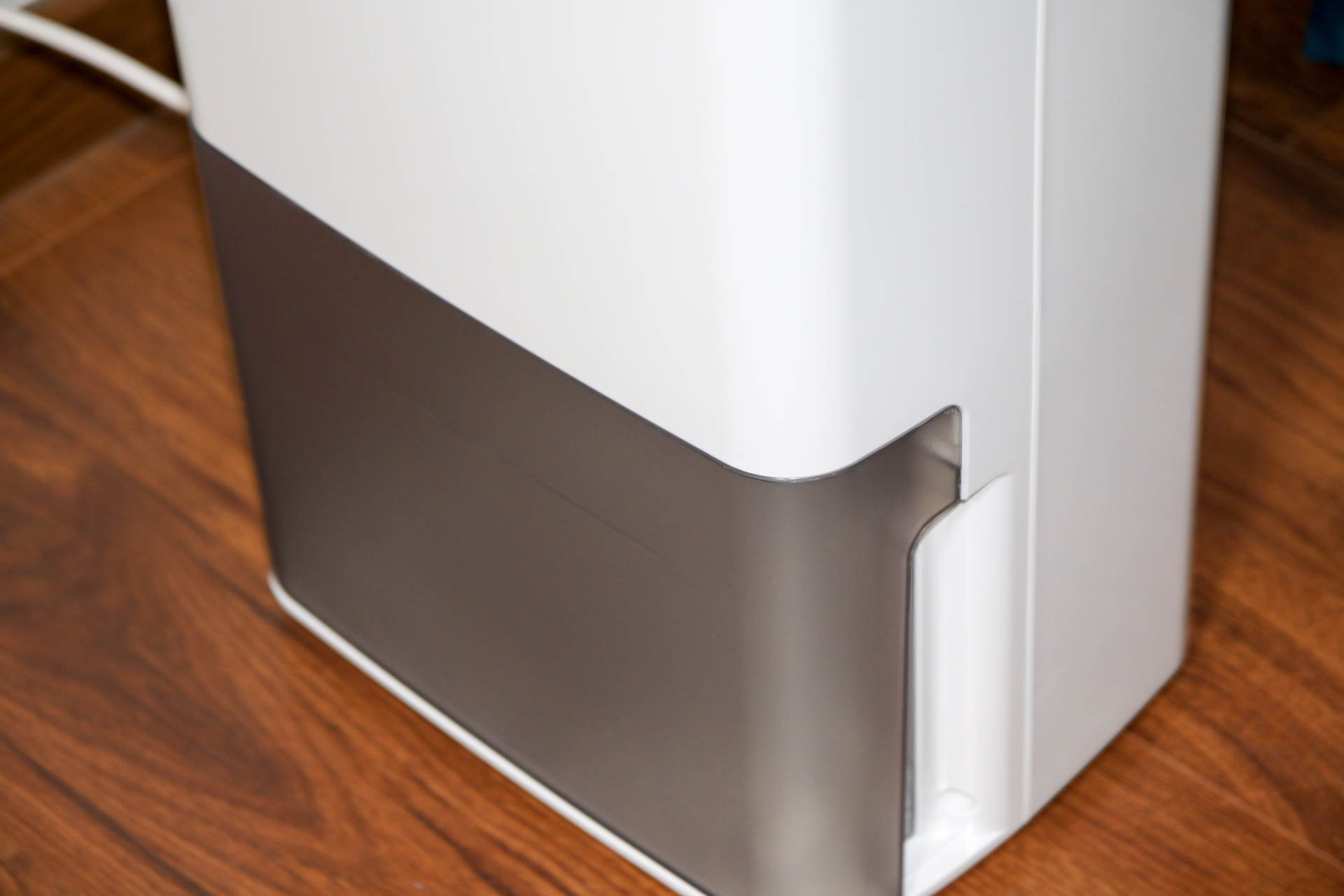 背面的也很简洁,上半部是超密度的过滤网,防尘防污,过滤网左下角则是连续排水功能的外接水管设计接口,可以不用反复倒水。隔壁的小孔则是电源线收纳孔,不使用的时候收纳电源线变得更加方便。