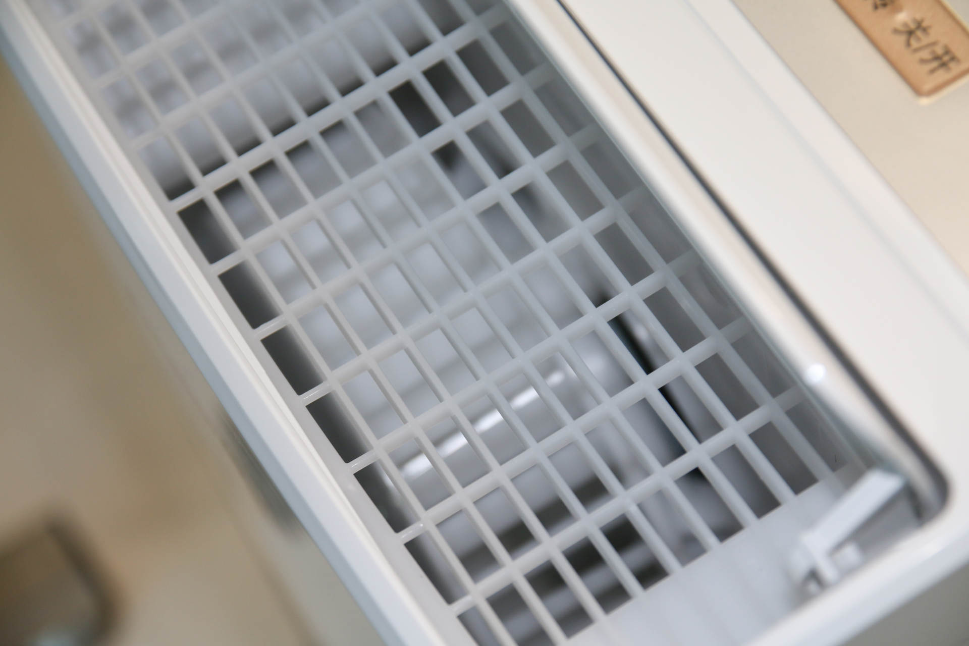 拆下滤网还可以看到蒸发器,翅片非常密集,这也代表着比表面积非常大,而大面积的蒸发器能够迅速实现热转换,快速除湿。