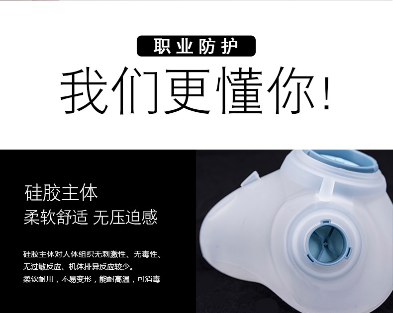 除了过滤等级,老工人在选择防尘口罩时还选择呼吸阻力低和口罩主体为硅胶材质的防尘口罩。呼吸阻力越低意味着工人配戴口罩呼吸越顺畅舒适,硅胶材质的口罩主体也有利于加强口罩的密封性和舒适性,对于接尘工人来说这样的口罩更适合自己使用。