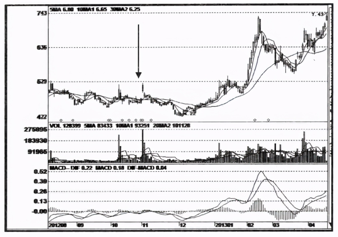 3.K线形态不同。试盘时日K线上下影线较长,实体较小。拉升时日K线实体较大,上下影线较短。