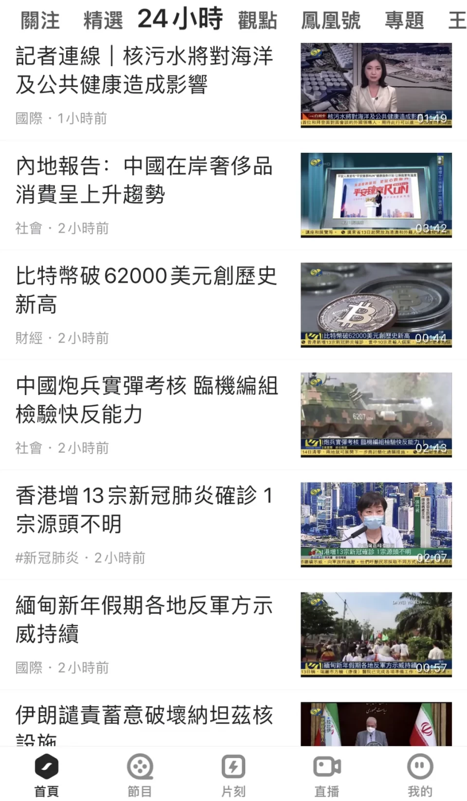 ⏰ 晚上6点 你在地铁上,想看看今天发生了什么,凤凰秀与电视端同步的24小时新闻短视频,一手掌握日月精华: