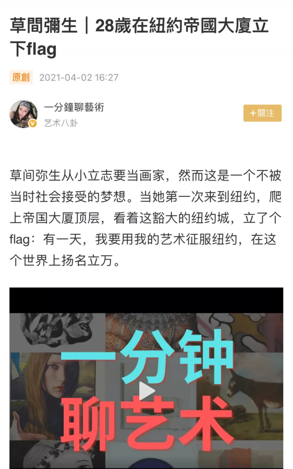 ▲ 凤凰秀自制节目《一分钟聊艺术》
