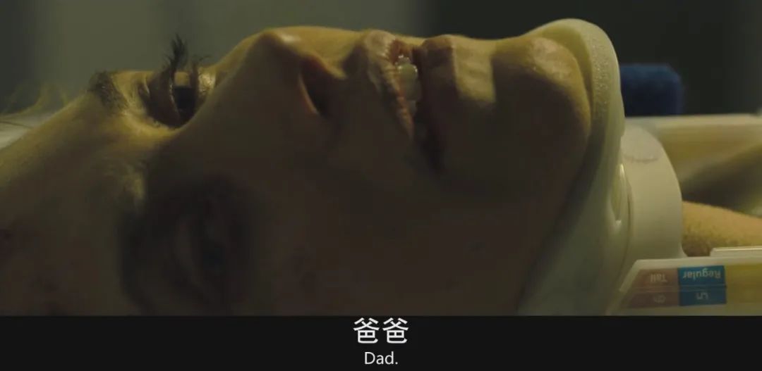 公寓走廊为暖色调,自然光照进室内,色彩也更多样;而养老院的灯光以冷色调为主,蓝绿色暗示此处是冰冷的医院,亦象征外界环境对于患病父亲的冷峻无情。