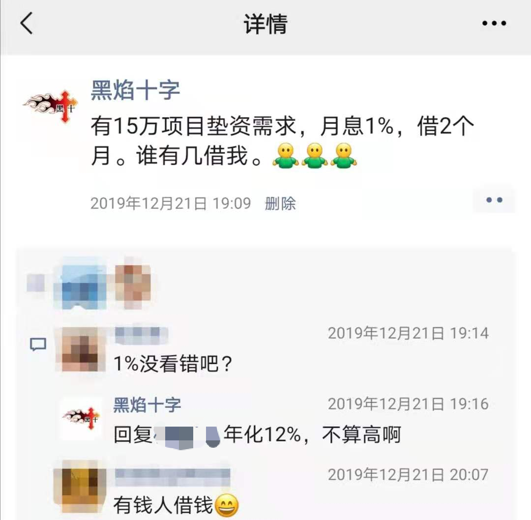 最初的时候,借钱的主要方式是朋友圈。