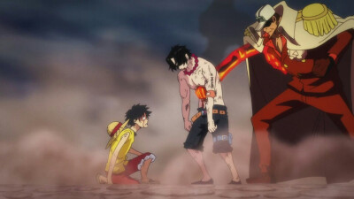 “艾斯!!!!!”伴随着一声嘶吼,被赤犬打穿胸膛的艾斯无力瘫倒在路飞的身上。