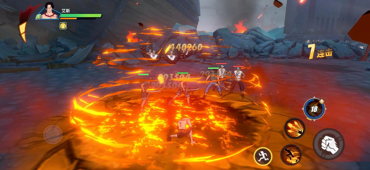 在《航海王:热血航线》这款游戏中,最大比例还原了原著的剧情和建模,进入游戏第一段CG就是让所有海米难忘的剧情:“顶上战争”,玩家操控艾斯同海军进行战斗,最后与赤犬进行决战,从战斗情况来看,游戏对原著的还原度较高,PVE战斗有割草的快感,技能特效也是根据原著中角色的特质进行设计,并且有较为精细的场景建模。