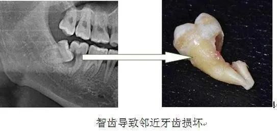 有的智齿已经连累周边牙齿坏掉,到时不得不两三颗牙一起拔掉,那时伤害就更大了。原则上一旦发现智齿发育不良,应尽早拔除,否则将来后患无穷。
