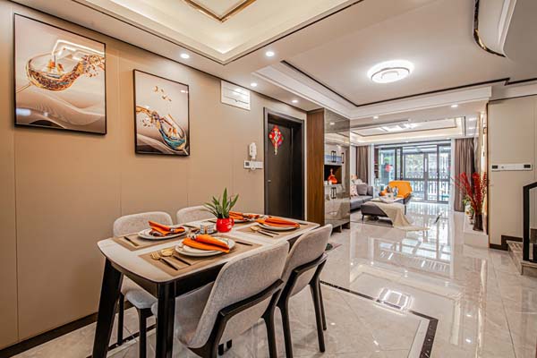 当客厅与餐厅的光源冷暖冲突时,衔接处最好有额外的中度光源过渡,不然会造成无形的空间割裂。