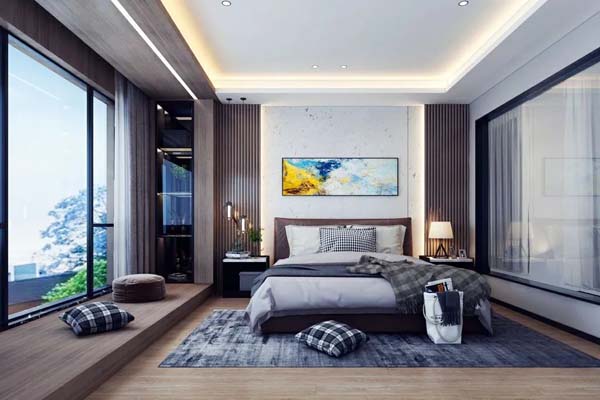 你甚至可以考虑取消主灯的设计,错落有致的无主灯设计完全可以让室内变得足够明亮。柔和的暖色光线也有利于营造温馨的氛围,更好的让身体放松,酝酿睡意。