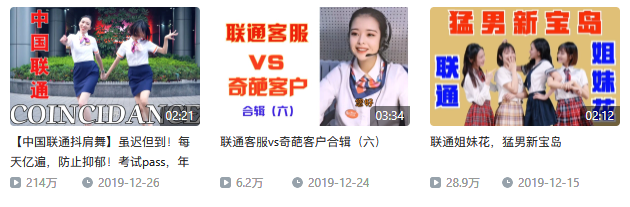 突然一条二十几万播放量的视频让联通像发现新大陆之后,就一发不可收拾。