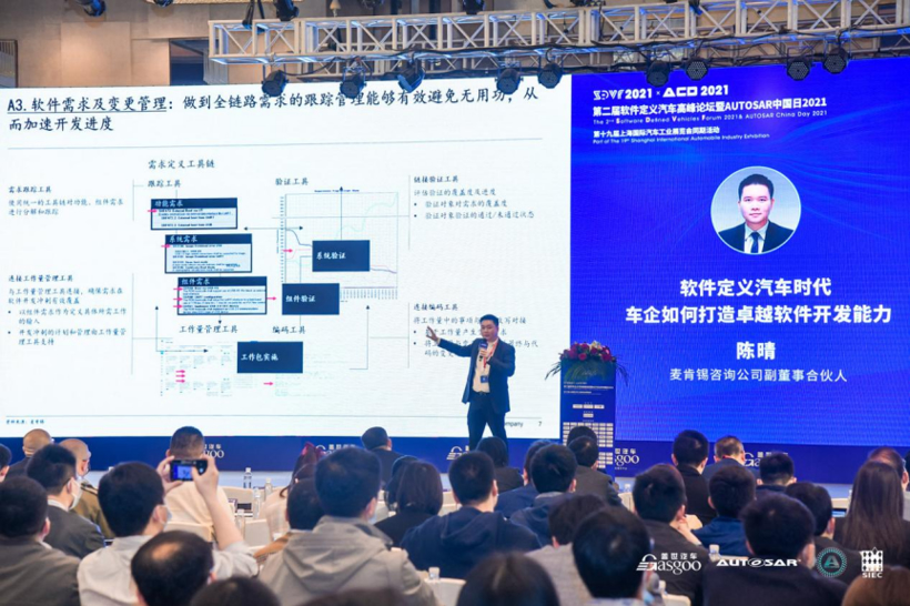 由盖世汽车、AUTOSAR组织、上海车展三方联合主办的SDVF2021第二届软件定义汽车高峰论坛暨AUTOSAR2021中国日于4月19-21日在上海举办,本次活动也是2021上海车展的同期活动之一,同时也是AUTOSAR组织在中国区唯一官方活动。本次会议邀请到了麦肯锡咨询公司副董事合伙人陈晴先生在本次论坛进行了题为《软件定义汽车时代,车企如何打造卓越软件开发能力》的主题演讲,以下是他在本次演讲的主要内容: