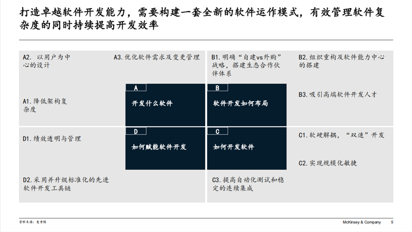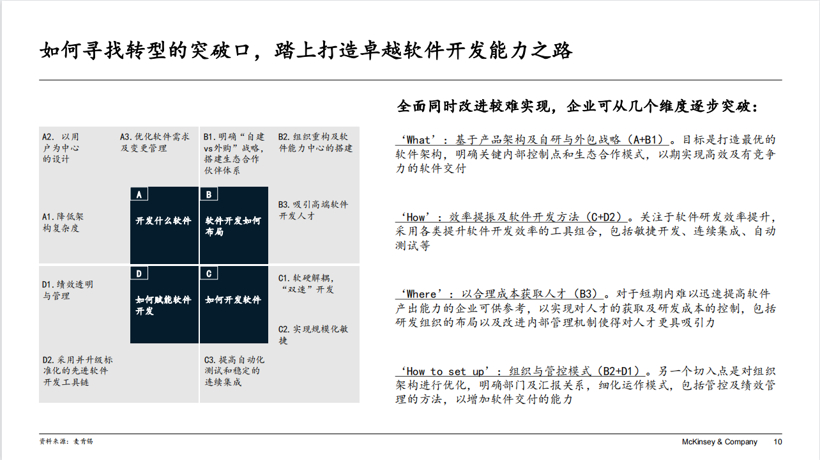 除了从产出量和效率的差距,我们也可以看到差距还有质量方面。比如最好的企业和最差的企业在第一波出来软件缺陷有多少的角度,基本上差了6-7倍。我们觉得整个汽车行业现在在软件需求那么大的情况下,在大家都在挣扎的过程中,特别是我们还处于绩效表现偏低的企业,他的压力会更加的大。